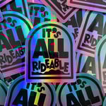 Bluey-pinky-rainbowy sticker of the It's All Rideable Logo. Super shiny, super sticky and super cool.